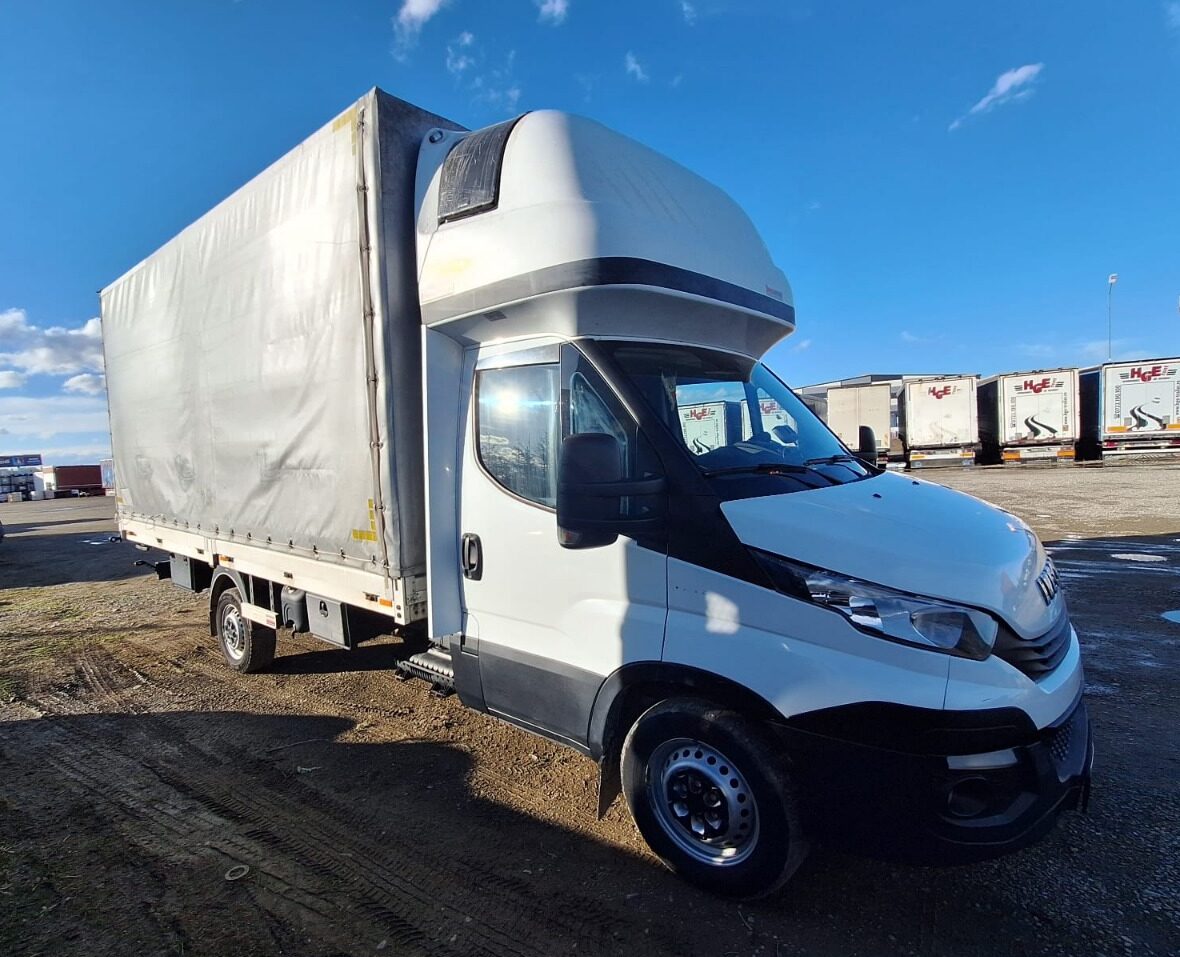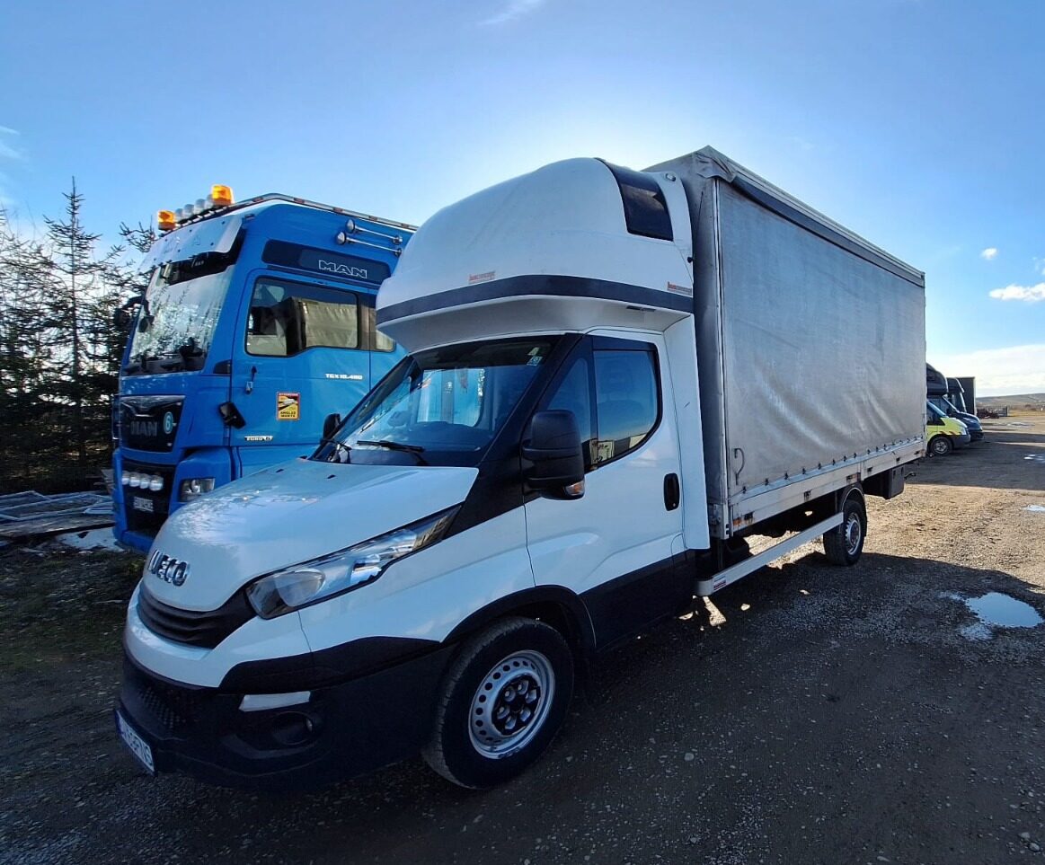 18 de autoutilitare de 3,5 tone disponibile cu prelată. Iveco Daily cu capacitate utilă ~1200–1800 kg, întreținute profesional și pregătite pentru orice tip de transport.